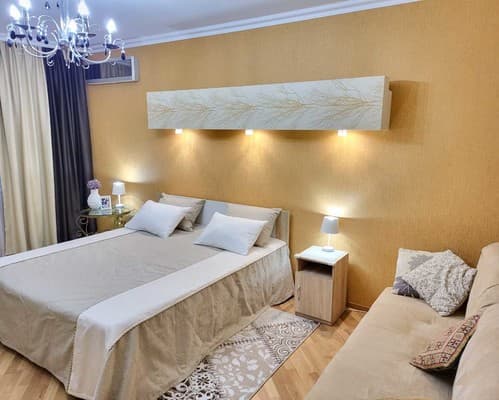 В каждой квартире предусмотрен раскладной диван, на котором можно разместить 1 взрослого человека или 2 детей. В зависимости от типа меблировки дополнительные спальные места могут располагаться в гостиной или на кухне. Для маленьких детей предлагаются детские кроватки, а также в наличии есть стульчики для кормления, ванночки для купания и другие детские принадлежности. Информацию о стоимости дополнительных мест и услуг уточнять при бронировании.